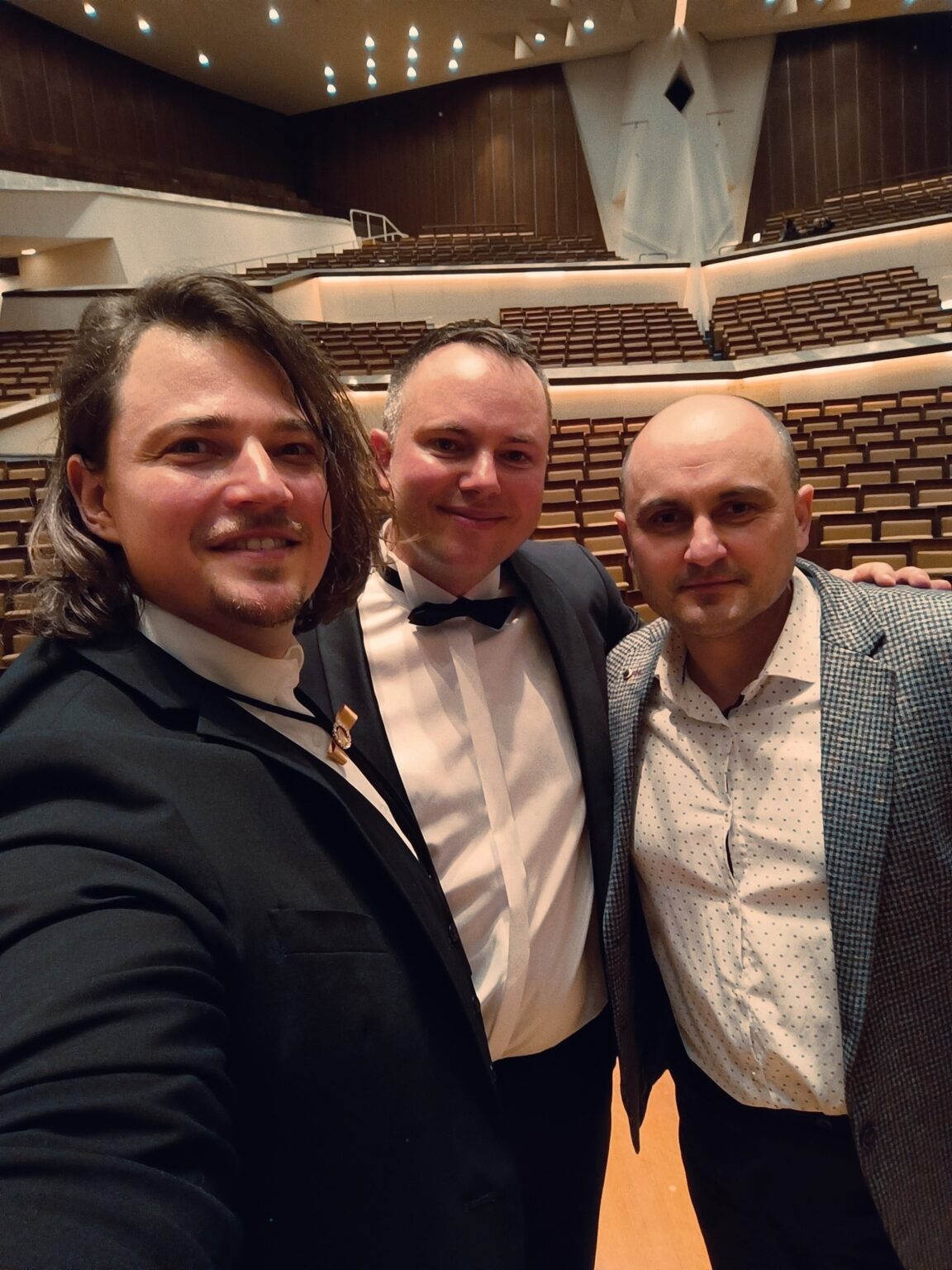 Wir teilten die Bühne mit dem herausragenden Jazzpianisten Mike Kaufmann Portnikoff und dem Dirigenten Bernhard Melbye Voss. Ein besonderer Höhepunkt des Abends war der Auftritt unseres Konzertmeisters Viktor Andrichenko: Mit seinem seltenen, charakteristischen Countertenor in den Vokalpartien von Ennio Morricone zog er den Saal vollkommen in seinen Bann. Das Berliner Publikum reagierte spürbar bewegt: lang anhaltender stehender Applaus und Rufe nach einer Zugabe bestätigten die emotionale Kraft dieser Musik.