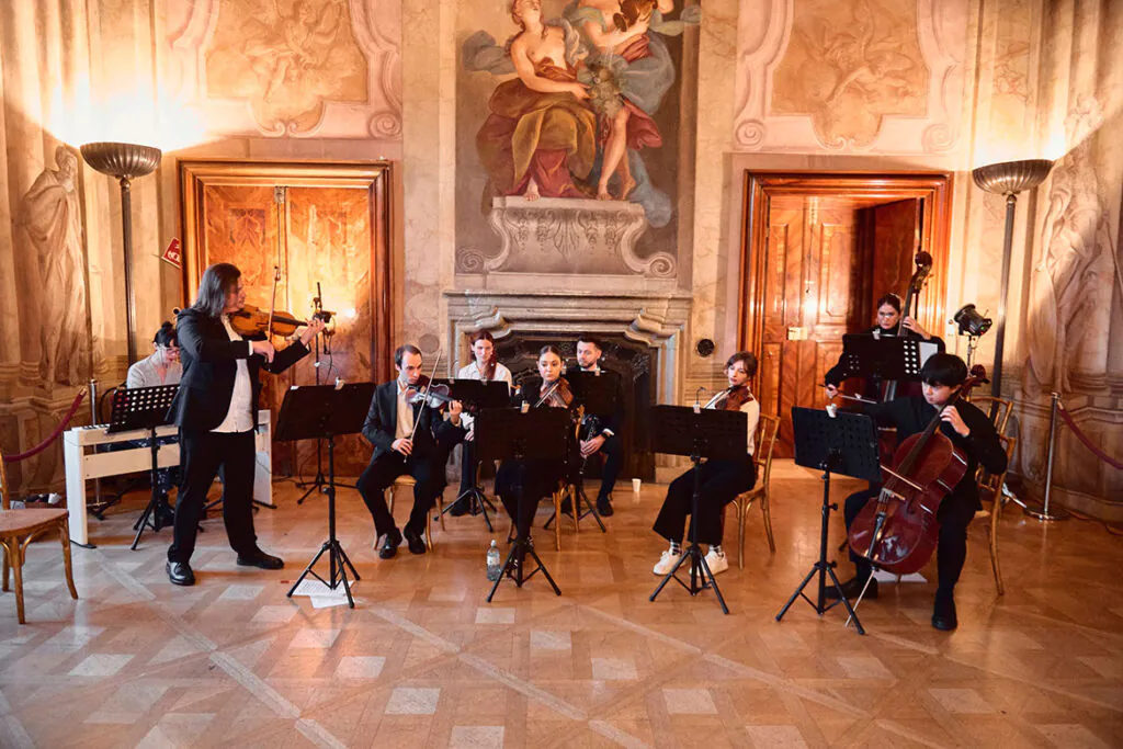 Erleben Sie mit unserem Orchester die Werke von Johann Strauss und Wolfgang Amadeus Mozart an einzigartigen Schauplätzen in Wien. Jedes unserer Konzerte ist ein Ereignis, das die jahrhundertealte Tradition der österreichischen Musik mit einer modernen Aufführungsästhetik verbindet. Melodien, die bereits in den höfischen Sälen des 18. und 19. Jahrhunderts erklangen, erwachen heute durch professionelle Musiker zum Leben, die jeder Note ihre Seele geben. Die besondere Atmosphäre unserer Spielorte — z. B. Schloss Hetzendorf — versetzt das Publikum dabei förmlich in frühere Zeiten.
